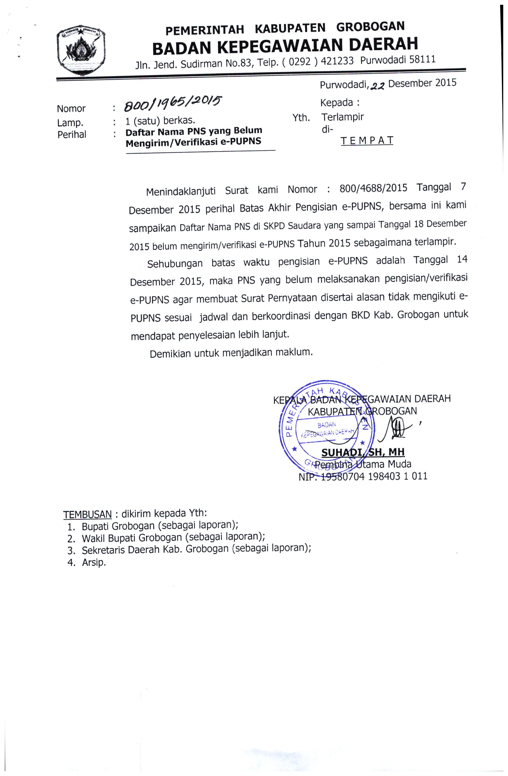 Untuk Lampiran Daftar Nama PNS yang Belum Mengirim/Verifikasi e-PUPNS dapat di download disini.