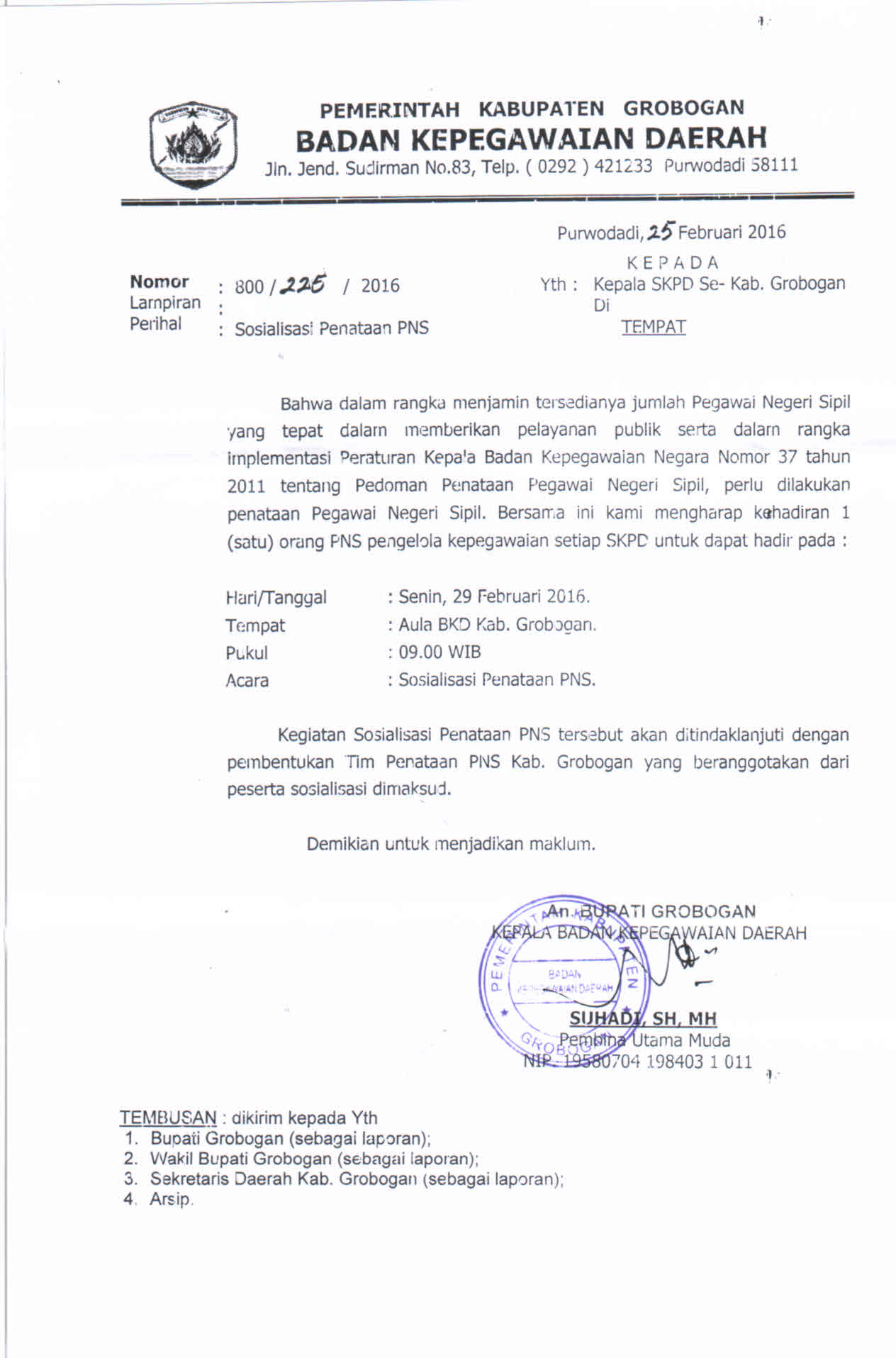 SURAT SOSIALISASI PENATAAN PNS