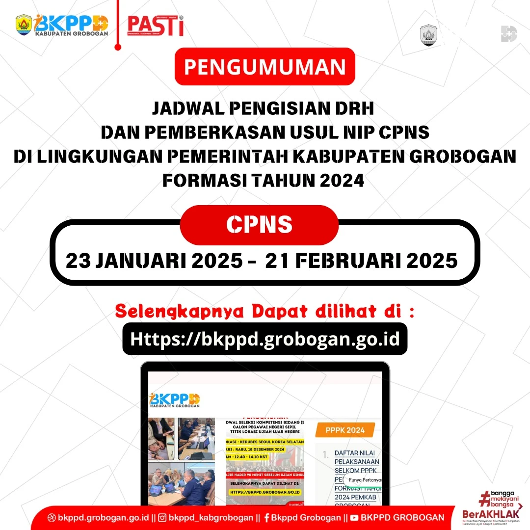 HASIL LIVE SCORE SELEKSI KOMPETENSI BIDANG (SKB) CPNS FORMASI TAHUN 2024 PEMKAB GROBOGAN