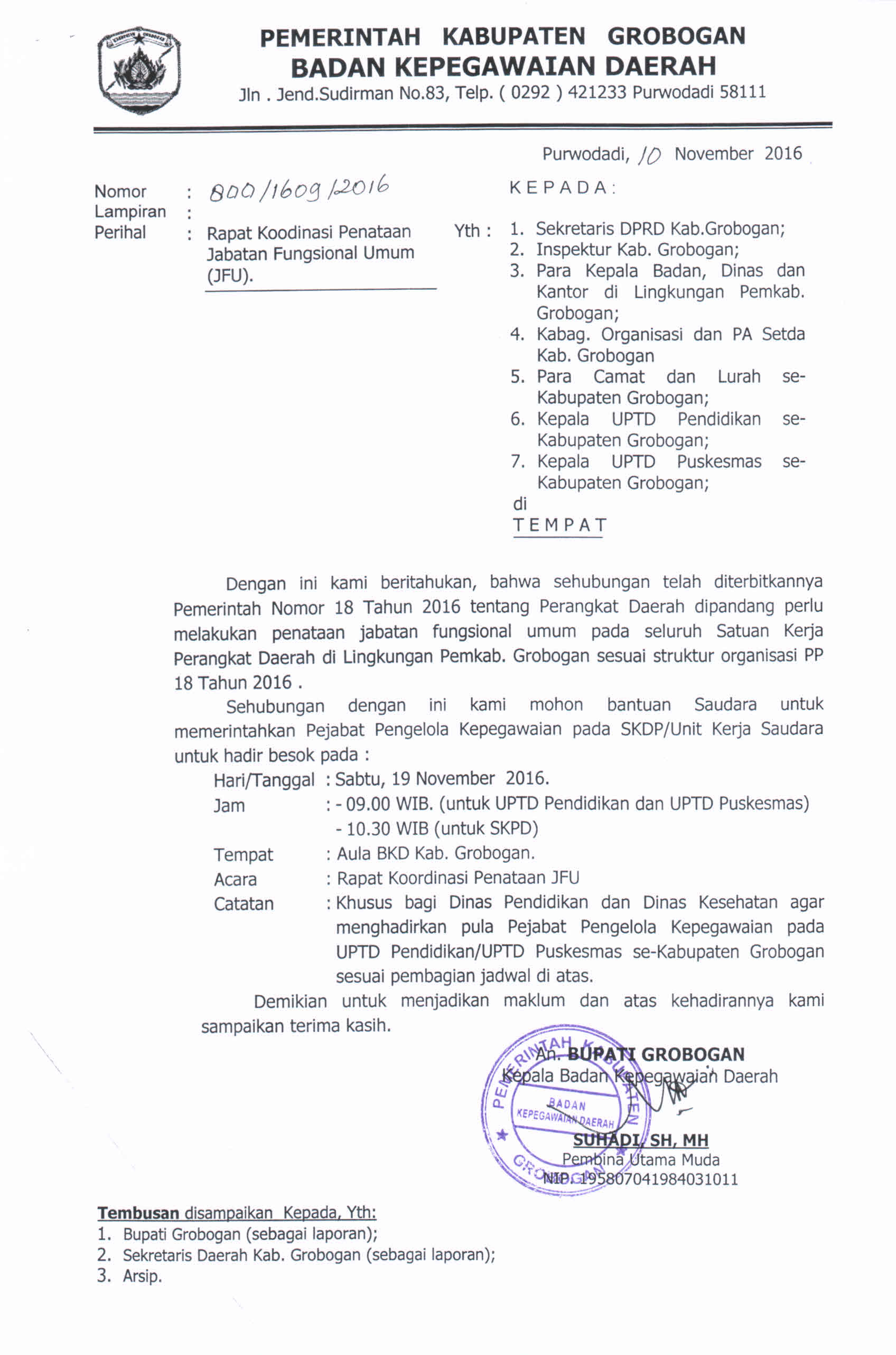 Undangan Rapat Koordinasi Penataan Jabatan Fungsional Umum (JFU)